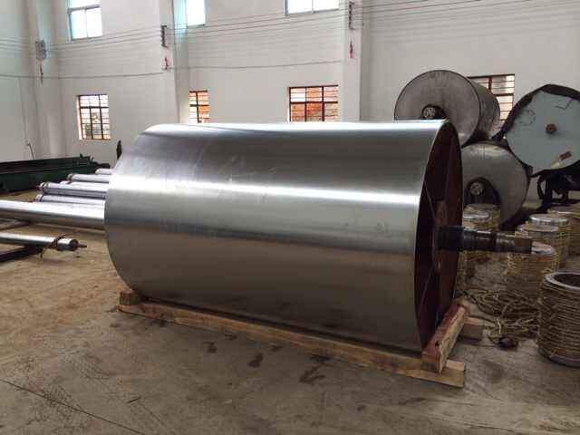 烘缸缸是用鑄鐵制成的兩端有蓋的空心圓筒,由缸體及其兩端的缸蓋組成,外徑多為1000~3000mm,在運轉(zhuǎn)過程中,內(nèi)通蒸汽將輸送的紙張烘干燙光。